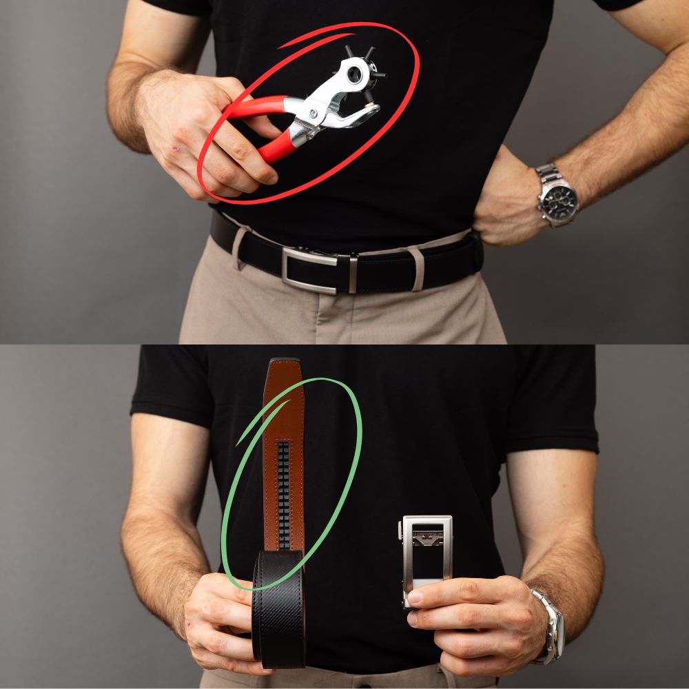 Kein Problem! Vergiss das umständliche herumrätseln der Gürtelgröße des Beschenkten. Unsere Automatikgürtel passen sich individuell an und sind das perfekte Geschenk für jeden Anlass